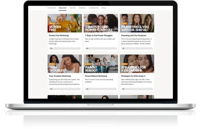 Instant access to Dr. Shefali’s complete workshop library covering parenting, relationships, and self-growth.